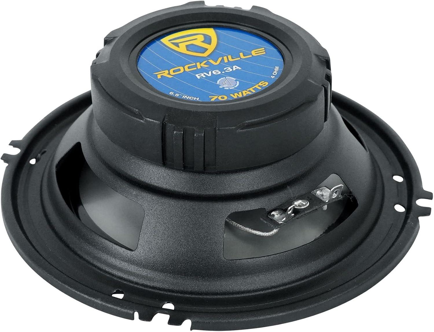 Rockville car audio speakers utilize the latest in speaker technology for superior sound quality. We use top quality polypropylene cones which are known for their high damping qualities. This means they can have a controlled break-up, which results in a smoother high frequency roll-off. Our Flexmotion Butyl Rubber Surrounds give the speakers a smooth response with minimal distortion. For smooth and extended high frequency sounds we used high temperature PEI dome tweeters with ferrite magnets. The RV-A series speakers are designed with superior SPL response and extremely high power handling making these perfect for use with the amp built into your receiver or with a high powered external amplifier. Due to their shallow mount design, these speakers fit in 97% of all vehicles.
