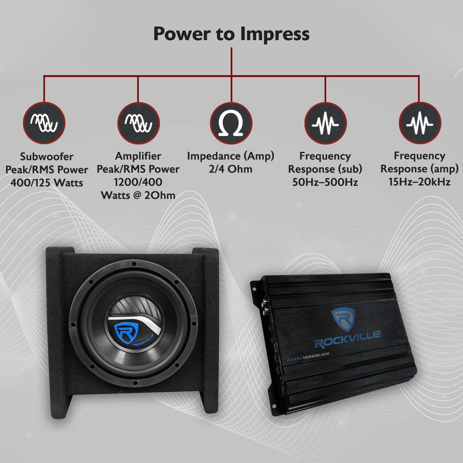 The Rockville RV8.1A 400W 8″ Loaded Car Subwoofer Enclosure with Mono Amplifier + Amp Kit is an all-in-one solution for adding rich, powerful bass to your vehicle. Compact yet impactful, this system is engineered for car audio enthusiasts who want deep low-end sound without sacrificing space.