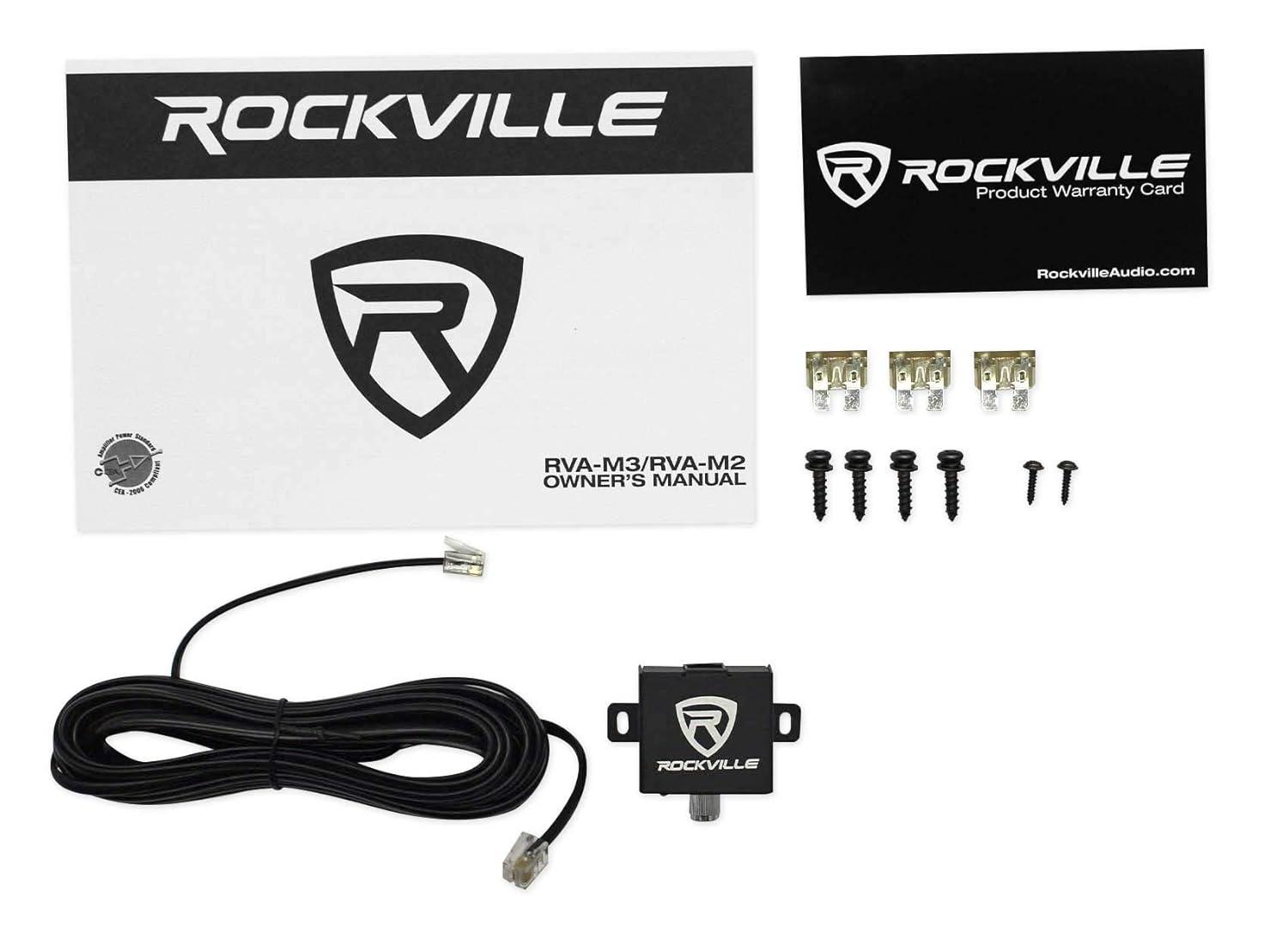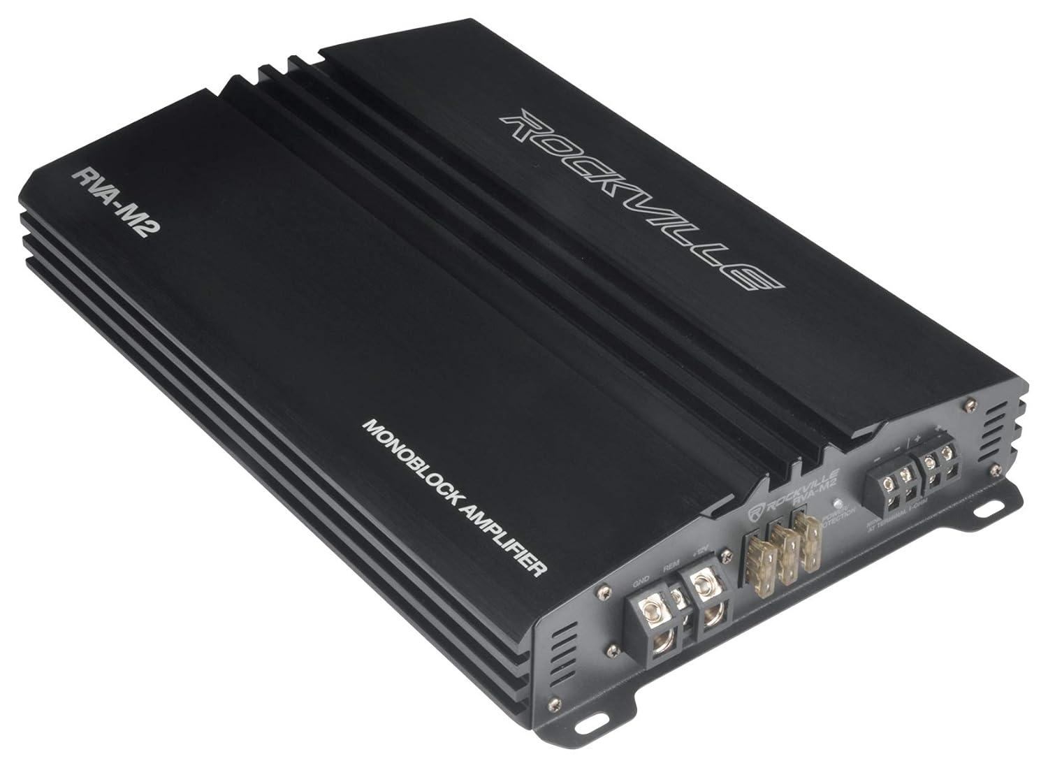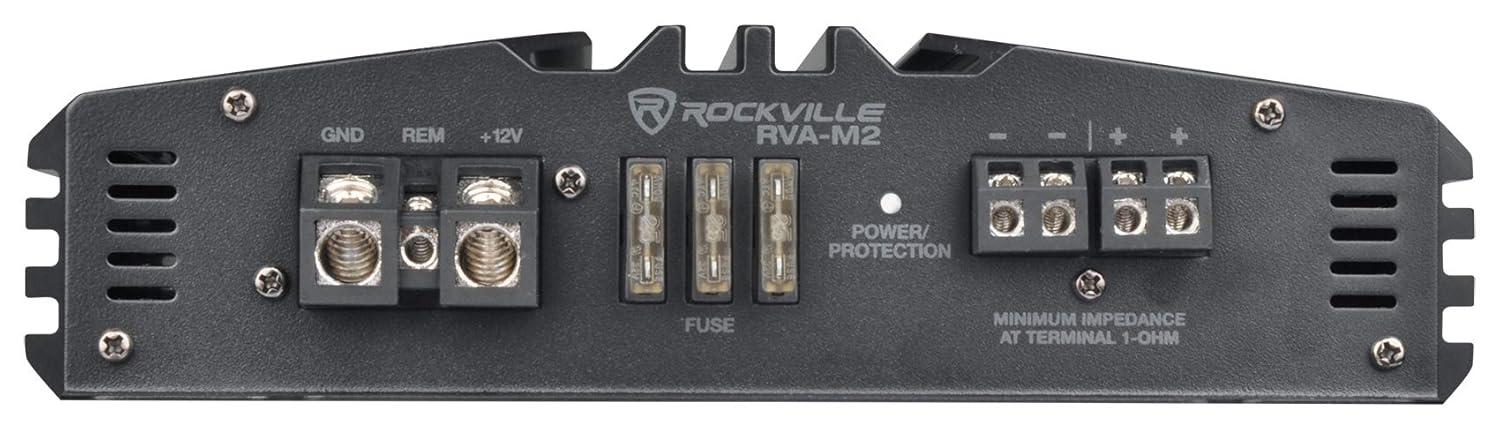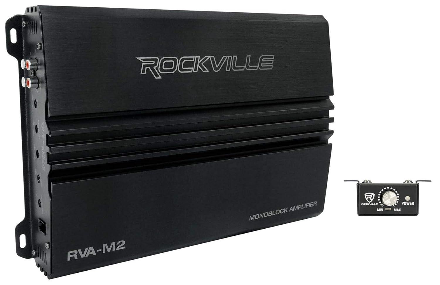 Package Includes: (1) RockvilIe RVA-M2 2500w Peak/625w CEA RMS @ 1 Ohm Amplifier Mono Car Amp+Remote. (1) RockvilIe RWK41 4 Gauge Complete Car Amp Wiring Installation Wire Kit with RCA's. RockvilIe RVA-M2 2500w Peak/625w CEA RMS @ 1 Ohm Mono Car Amplifier. Metal Bass Remote Included. 1 Ohm: 625 Watts RMS CEA Compliant (<1% THD @ 14.4 Volts) (70.2% efficient)