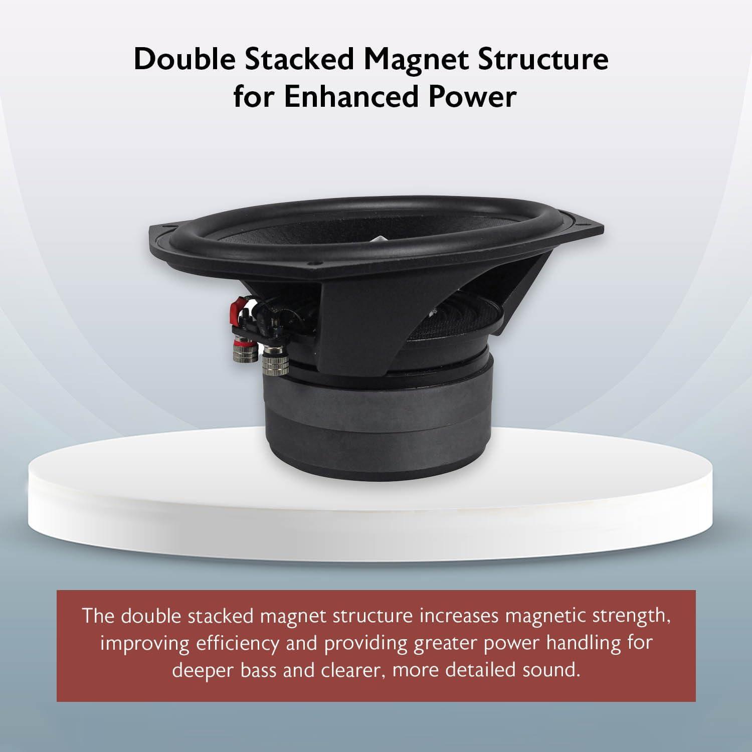 Built for Volume: Features a massive double-stacked 60oz magnet structure and 2″ high-temperature voice coil for unmatched power handling.