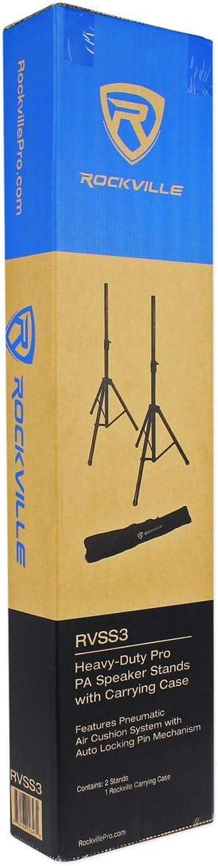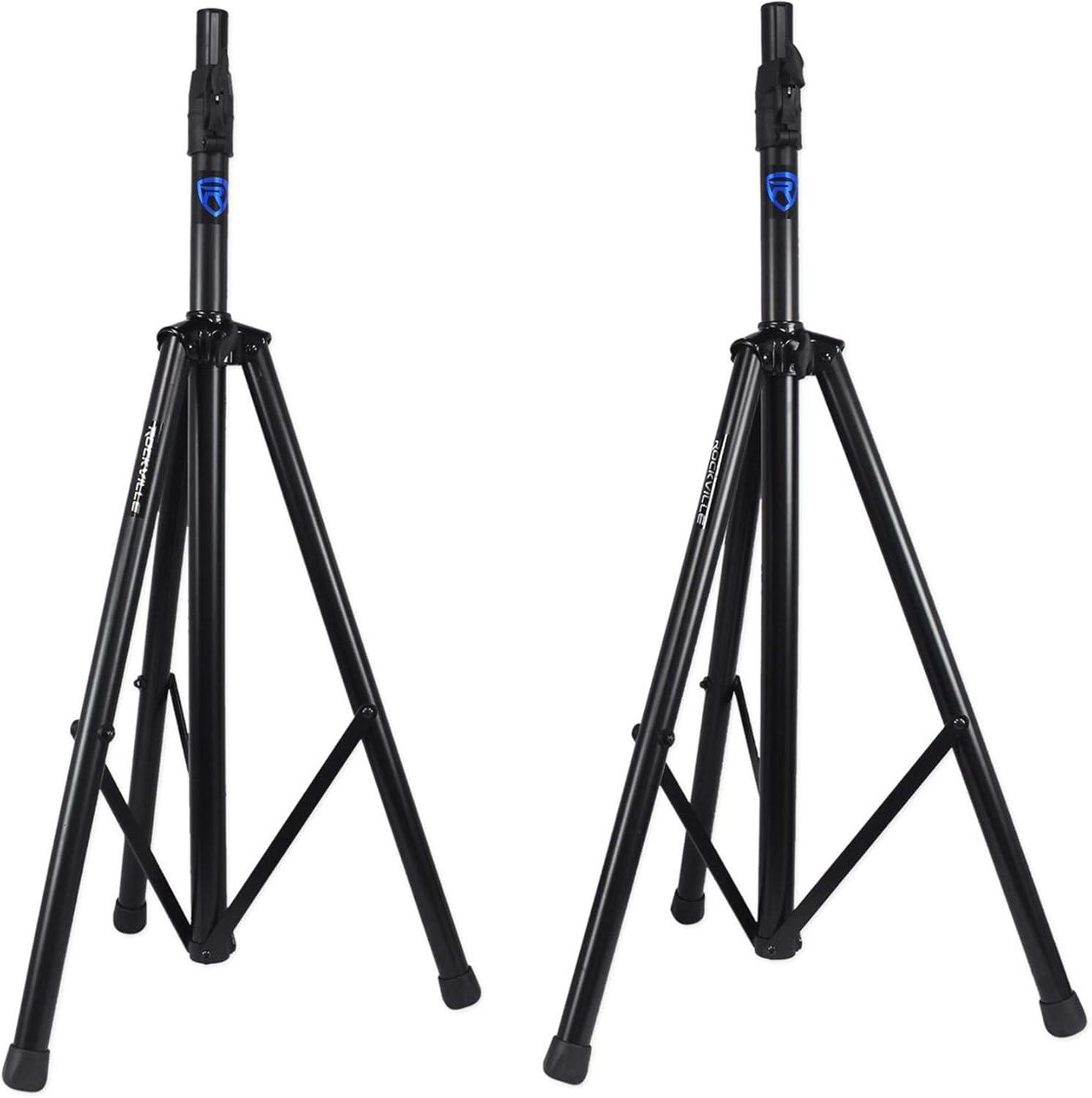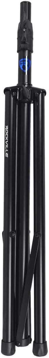 (2) Rockville RVSS3 Tripod Speaker Stands With Pneumatic Air Assist Lowering Mechanism. Air cushion system allows speakers to be lowered down slowly with ease.