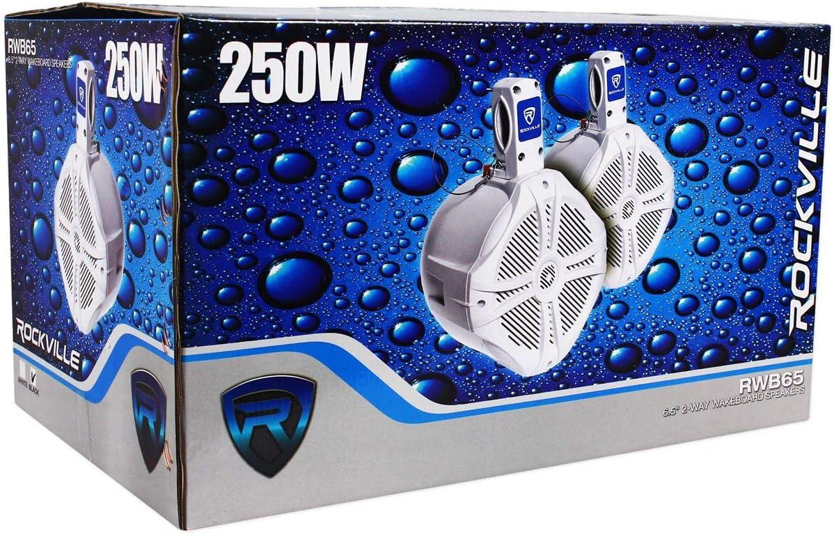 The Rockville RWB65B 6.5″ Marine Wakeboard Tower Speakers deliver high-fidelity sound and rugged durability for outdoor adventures. Designed for boats, Jeeps, and ATVs, these speakers provide 500W peak power (250W per speaker) and 150W RMS, ensuring clear audio over wind and waves. Their marine-grade construction withstands salt, fresh water, and UV rays, with rustproof stainless steel terminals and a protective coating for lasting performance.