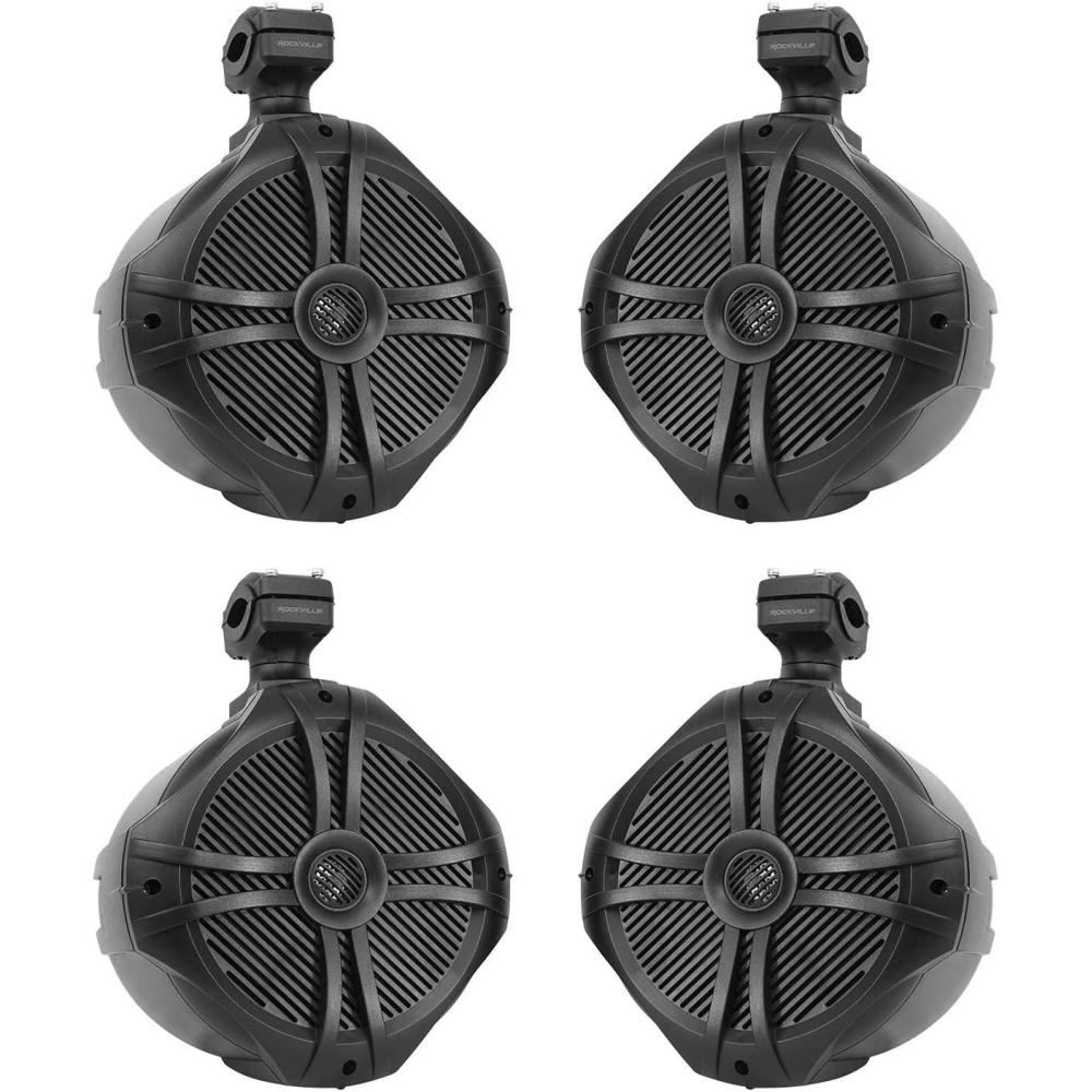 Rockville 4 WB65 6.5″ 600w Metal Marine Wakeboard Swivel Tower Speakers+Receiver