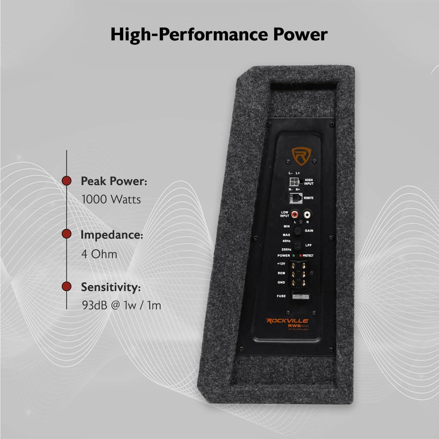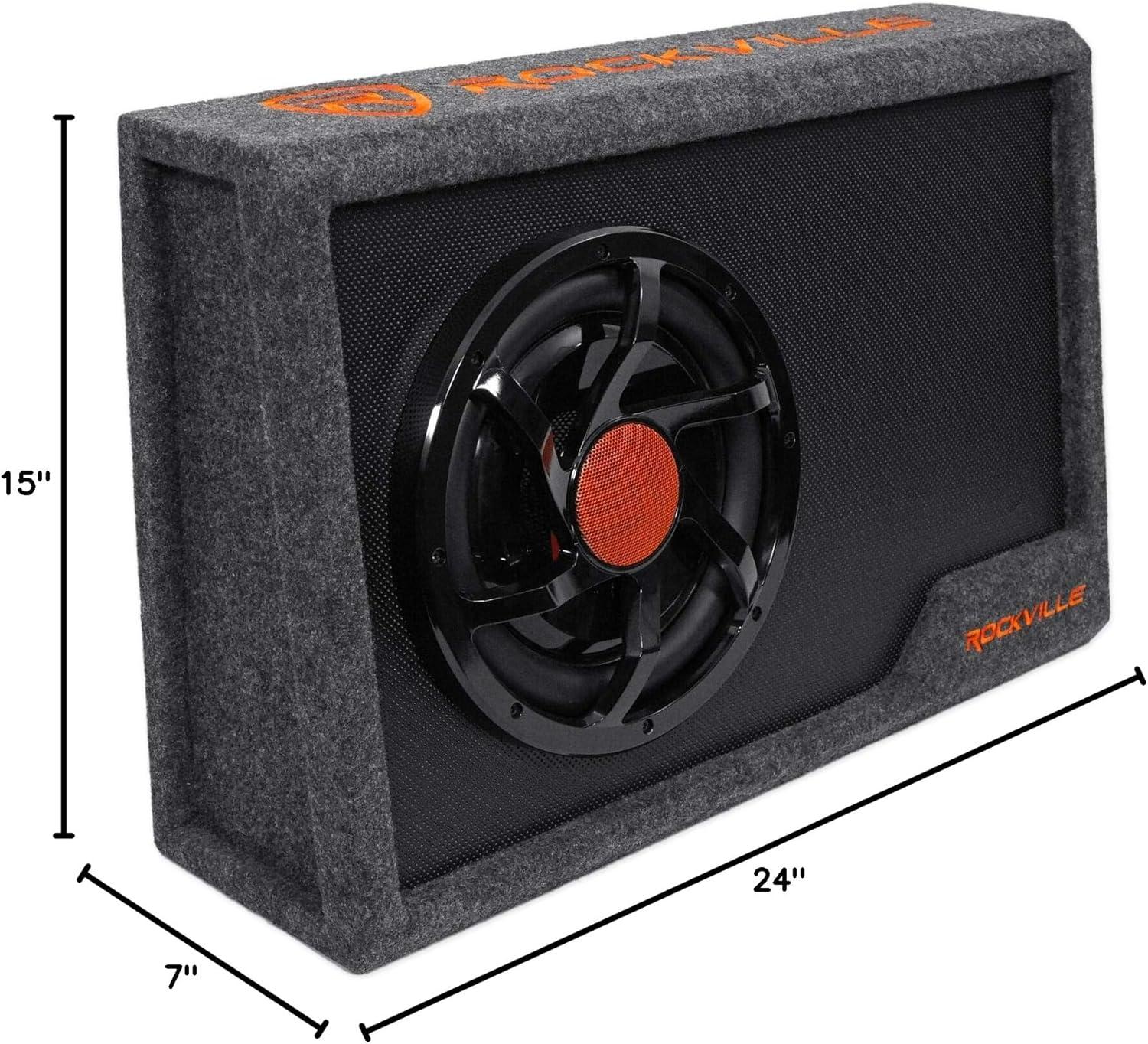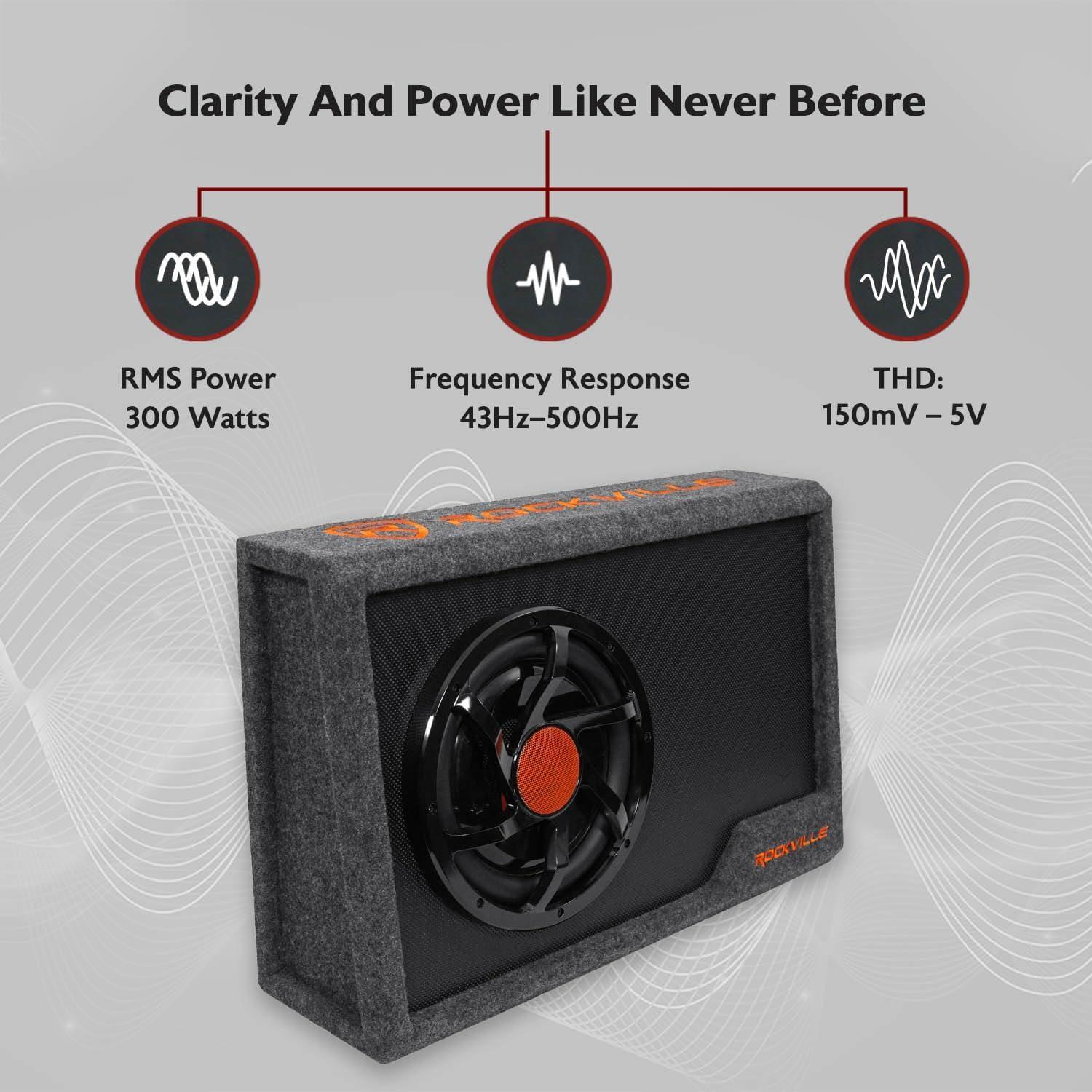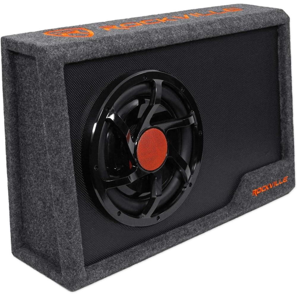 adding bass to any vehicle’s audio system. The Rockville slim powered subwoofer