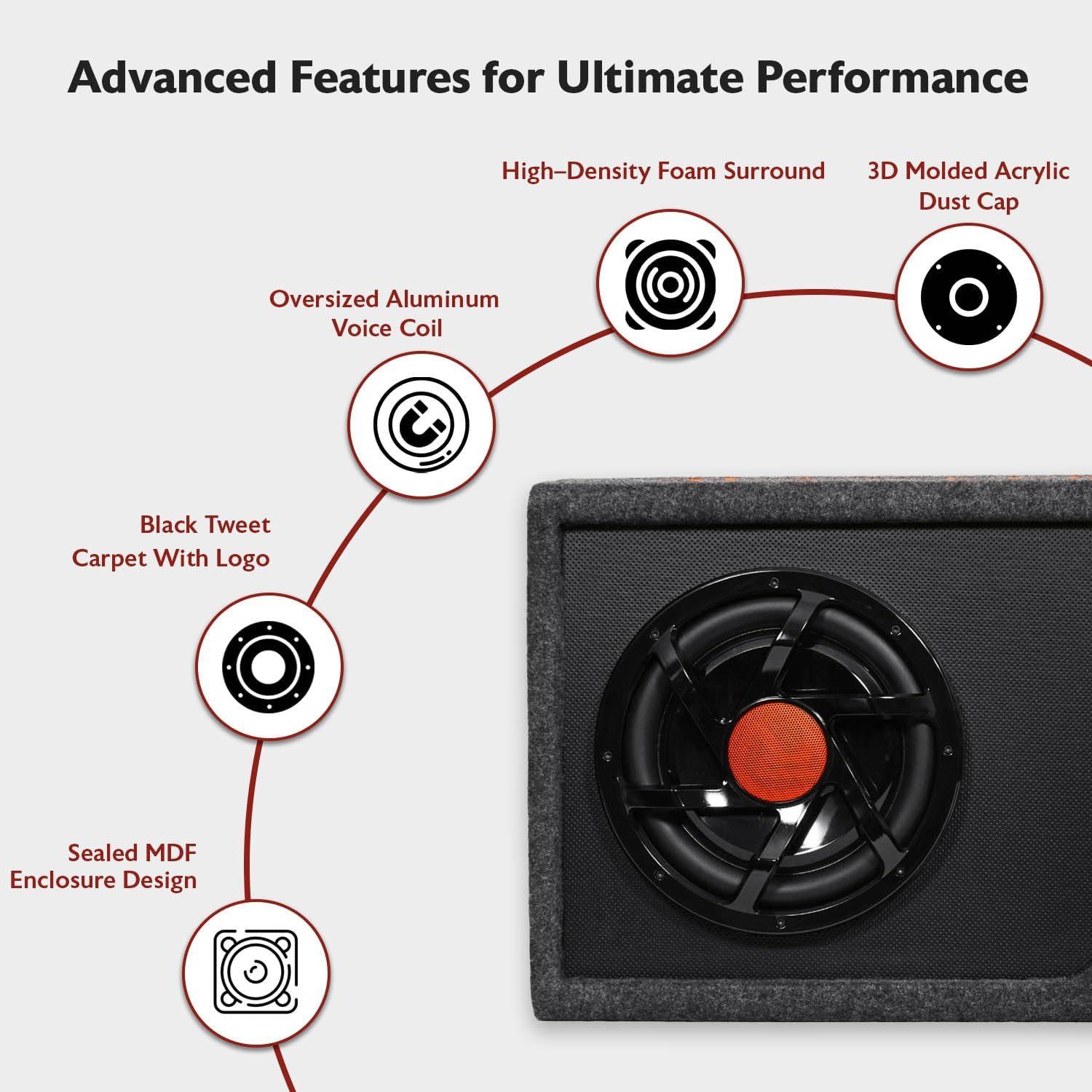 Utilizing a slim but heavy-duty subwoofer, durable enclosure and mono block