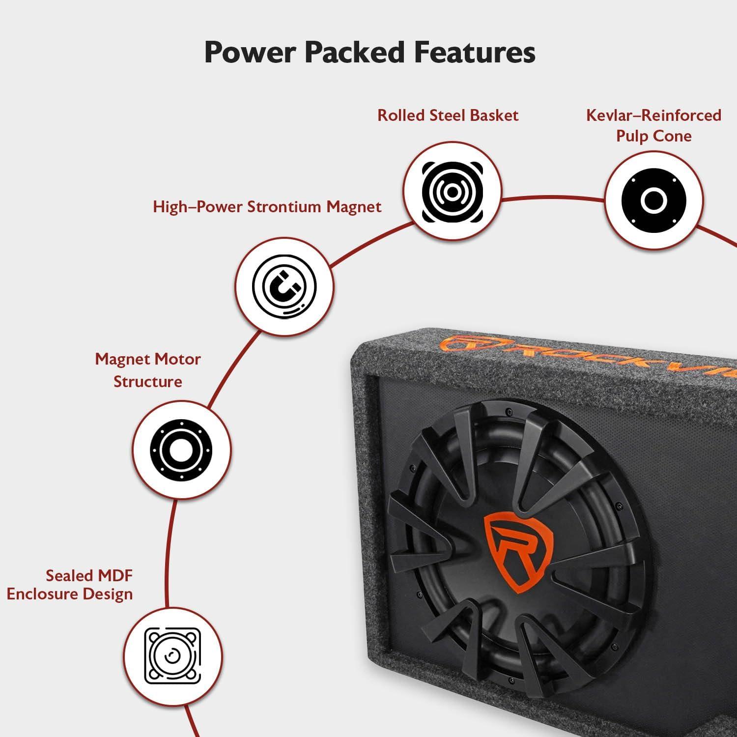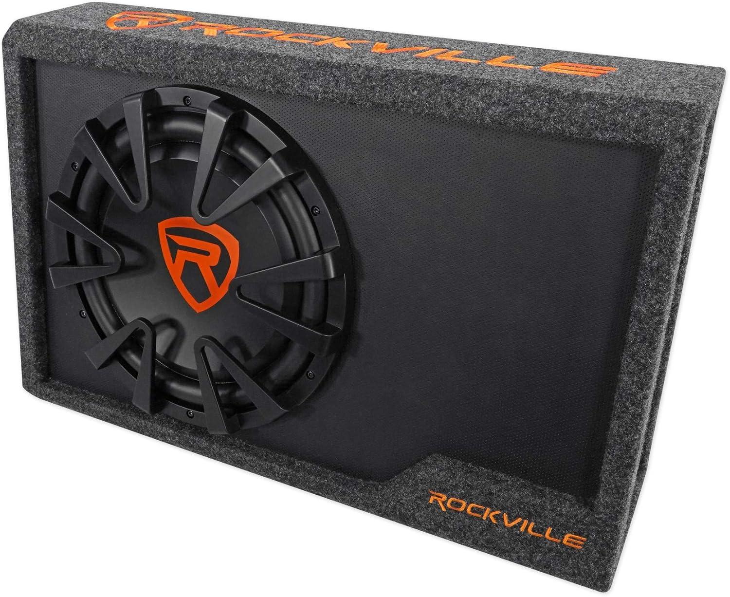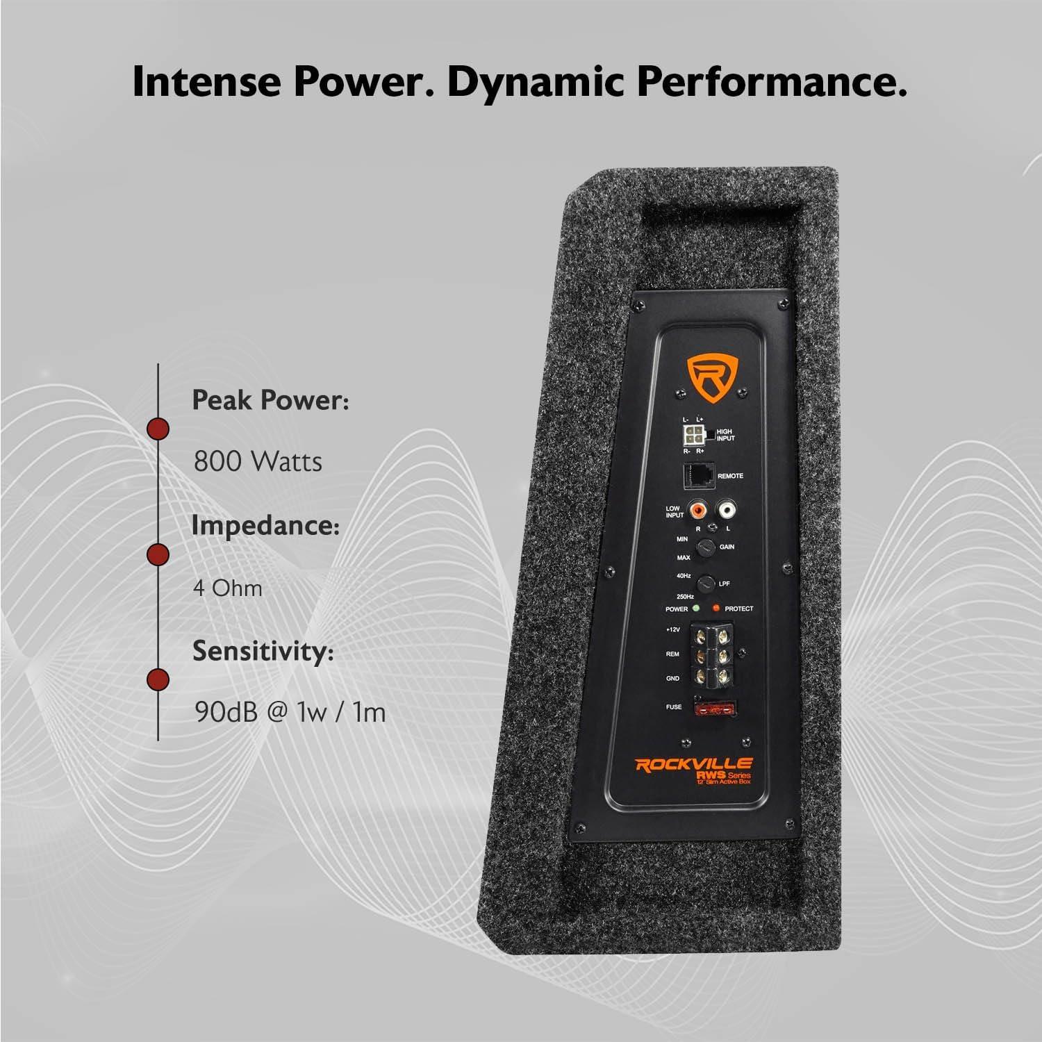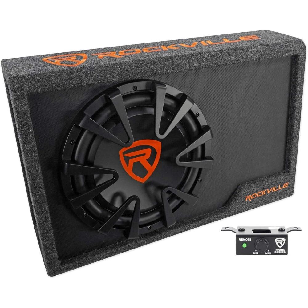 Rockville RWS12CA 1200W 12″ Amplified Powered Car Subwoofer Enclosure, 4 Ohm, Slim Design, Built-in Amplifier, Remote Bass Control, for Cars, Trucks & SUVs