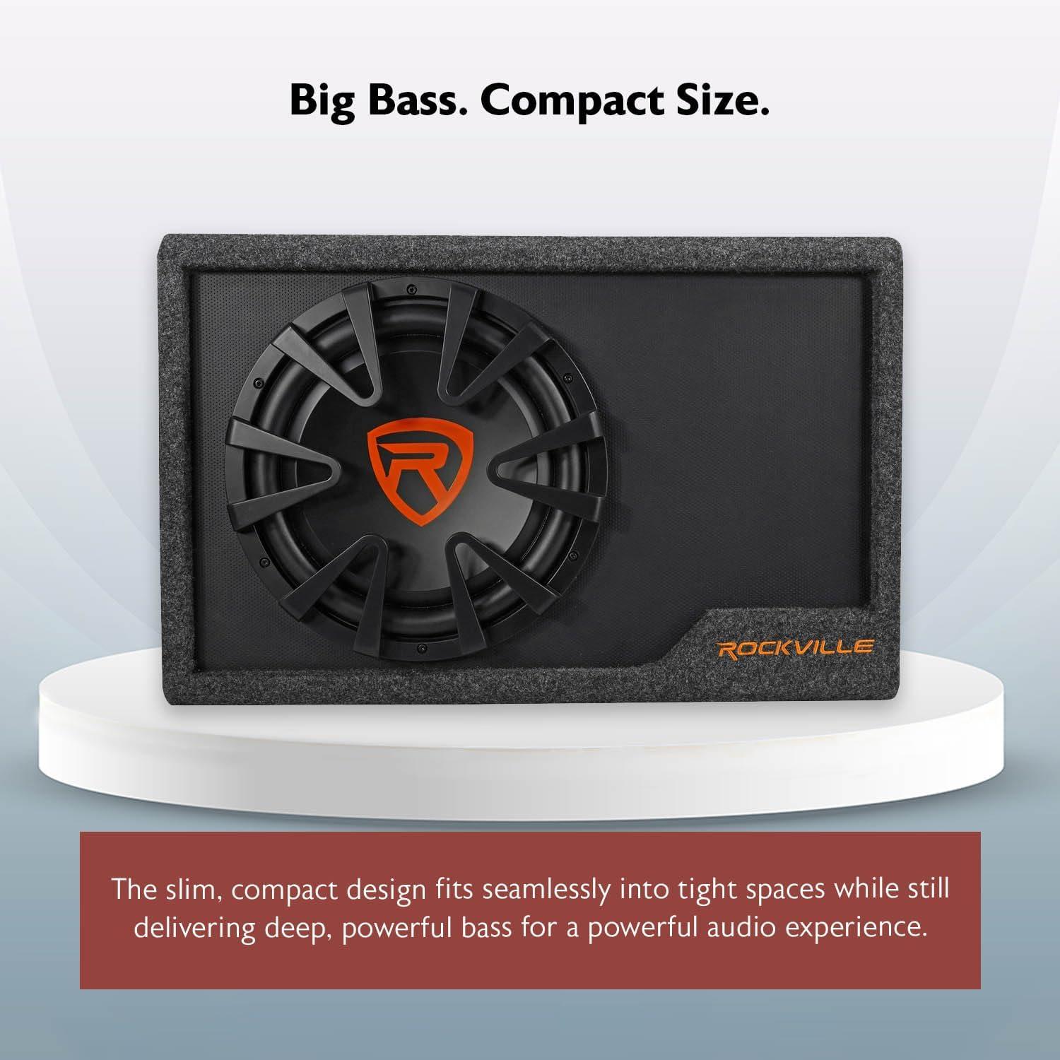 Rockville RWS12CA 1200W 12" Amplified Powered Car Subwoofer Enclosure, 4 Ohm, Slim Design, Built-in Amplifier, Remote Bass Control, for Cars, Trucks & SUVs