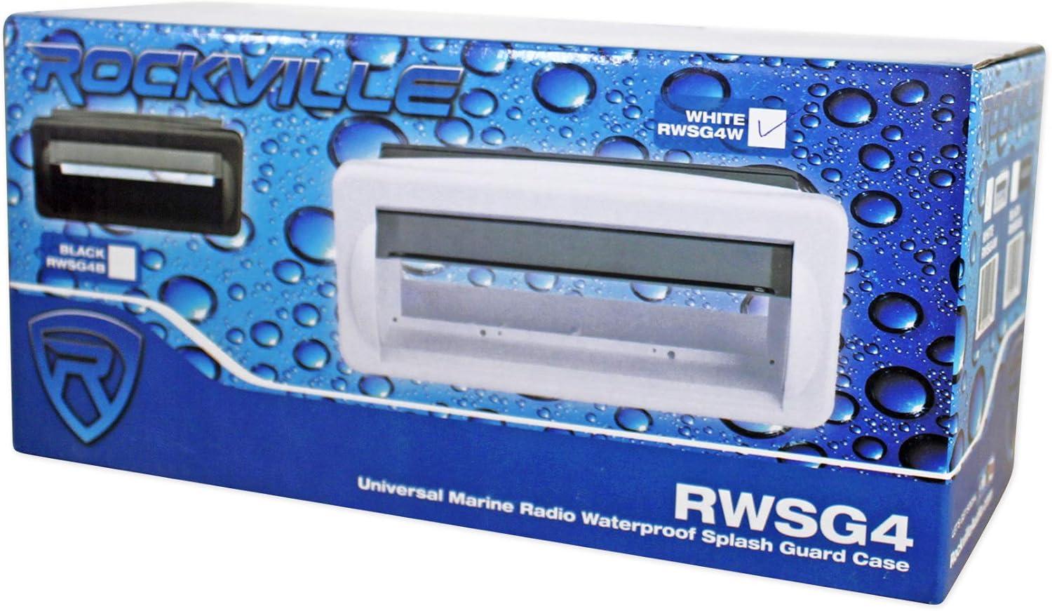 Rockville RWSG4W Water Resistant Universal Marine Stereo Cover, White, Heavy Duty UV-Protective Boat Radio Shield with Easy-Install Design, Mounting Gasket and Hardware Included