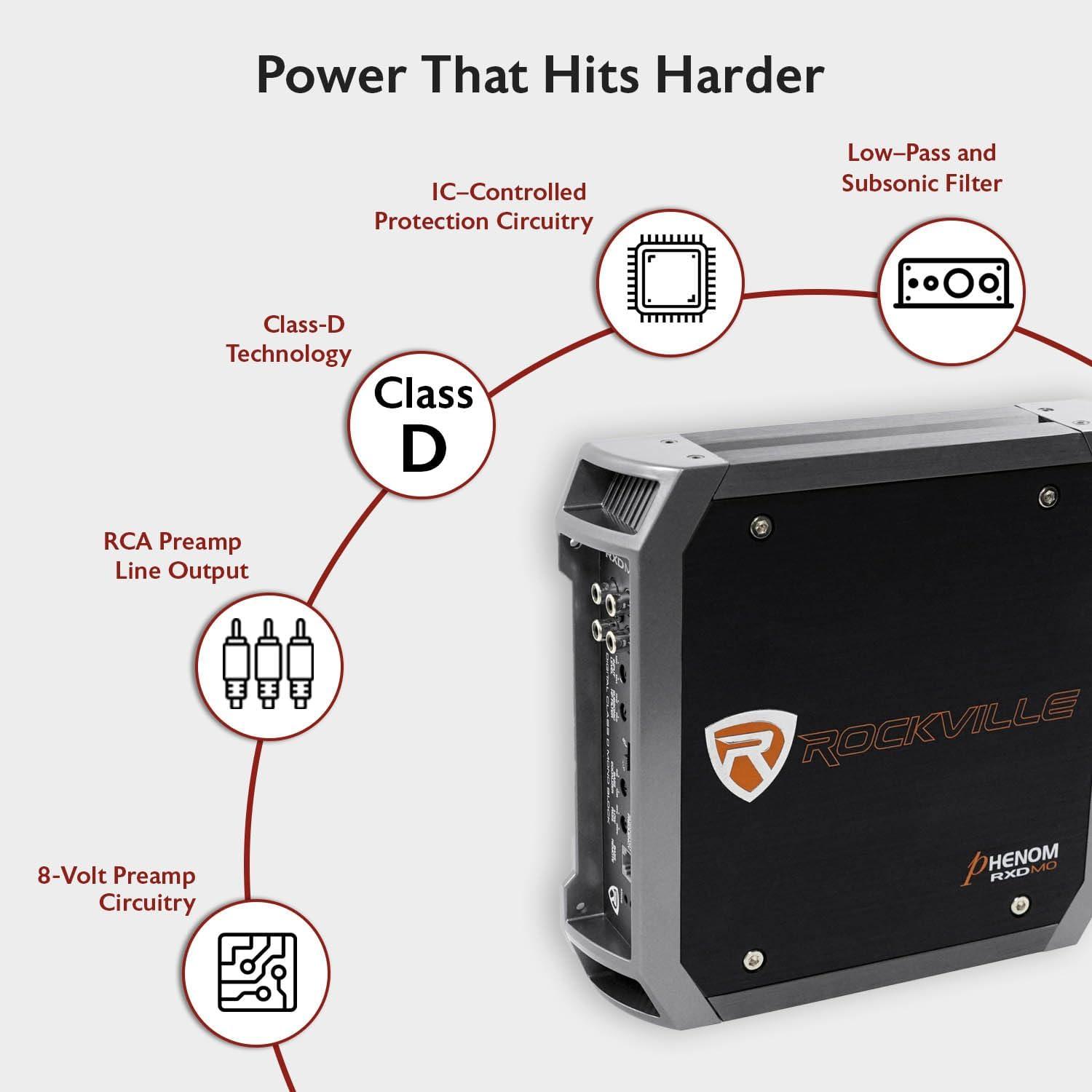 User-Friendly Design: Includes remote dashboard subwoofer control, LED-illuminated logo, and RCA line input/output for flexible installation and easy operation.