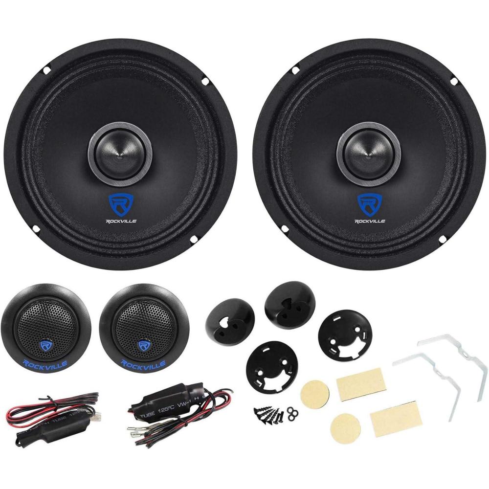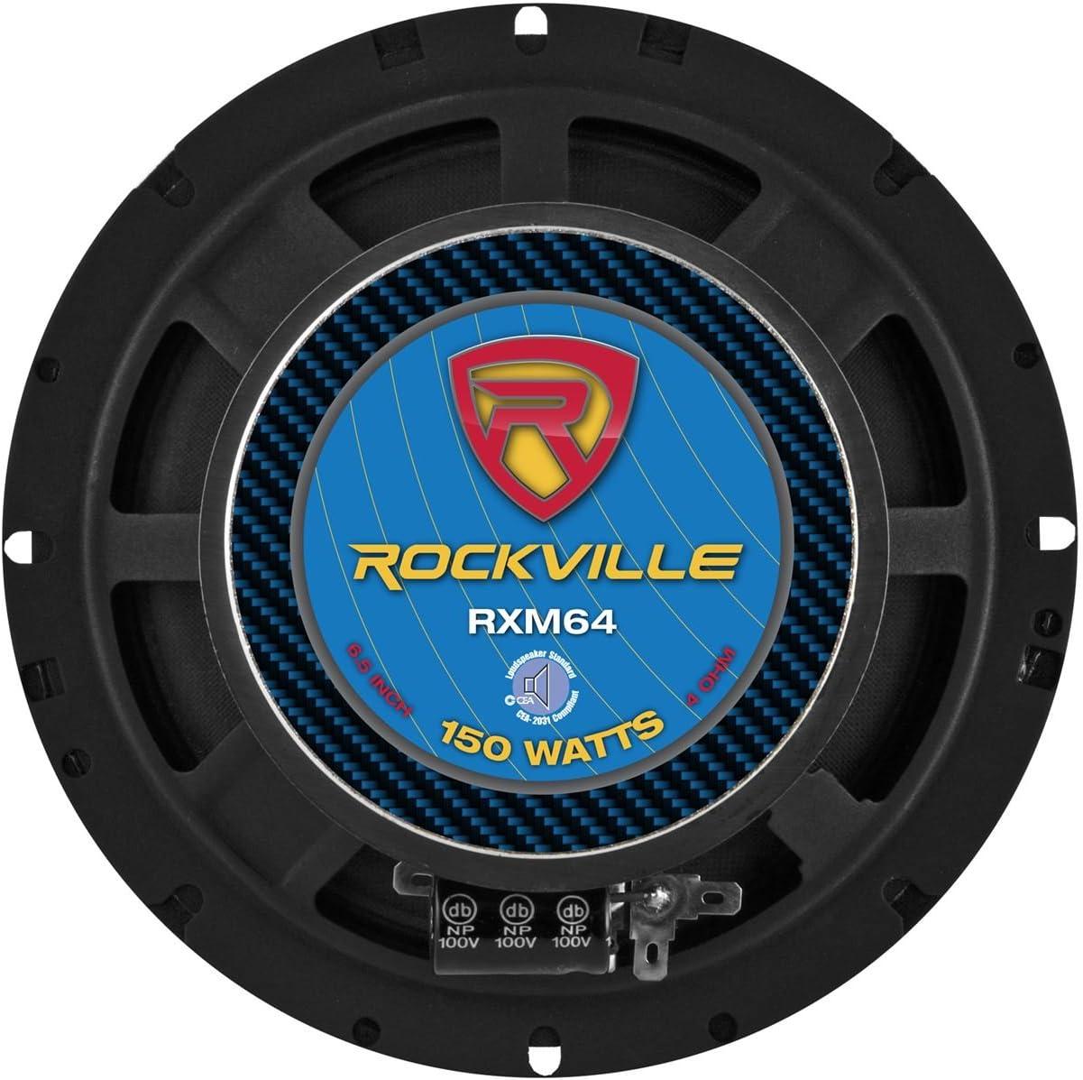 Package Includes: (2) Rockville RXM64 6.5″ 150W 4-Ohm Mid-Bass Driver Car Audio Speaker, Kevlar Cone, (1) Pair of Rockville RT6 1″ Silk Dome Neo Swivel Tweeters, 240 Watts Peak/60W RMS CEA