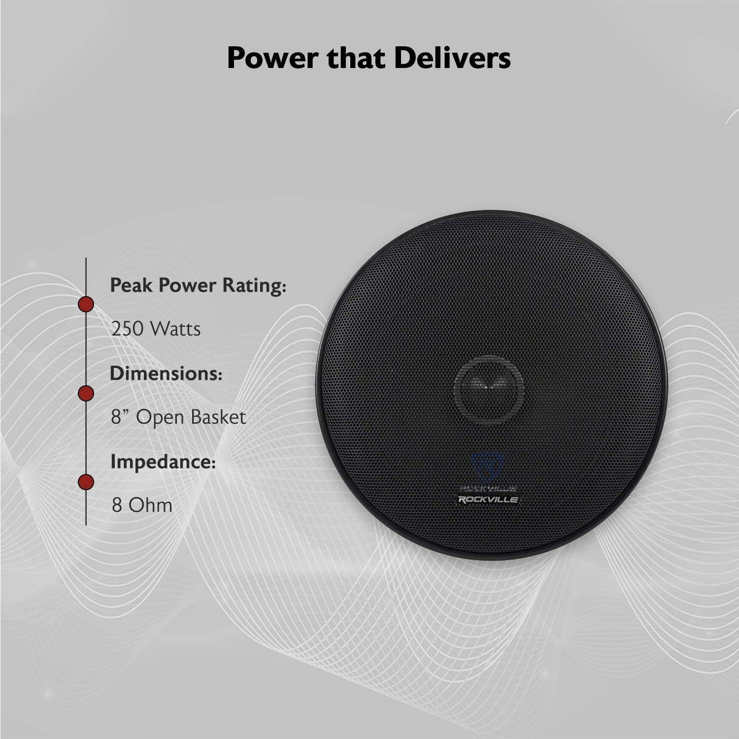 Rockville RXM88 8″ Mid-Bass Driver Car Speaker, 250W Peak/125W RMS, 8 Ohm, Kevlar Cone, Steel Basket, High Sensitivity, for Car Audio Systems(4 Ohm With Bullet)