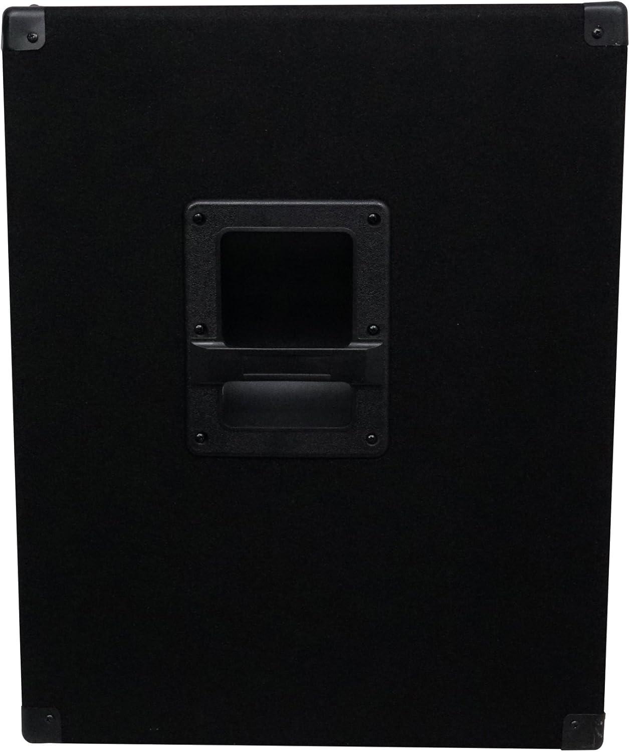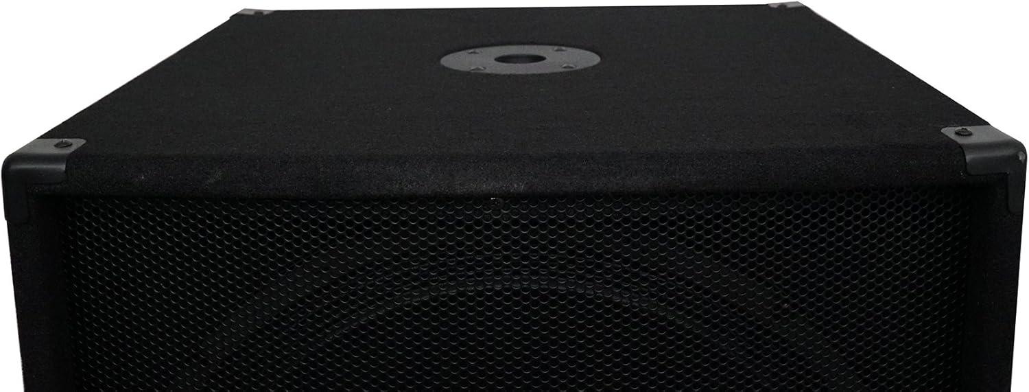 3 High temperature aluminum voice coil. 90 oz woofer magnet. Dual Ported Enclosure for Improved Bass Response. Construction: High-Density, High-Quality Non Resonant MDF, Stapled, Bonded & Braced. Ergonomic Recessed Handles. Molded Steel Grill. Aviation Grade Black Carpet. Pole Mount. Rubber Isolating Feet. Binding Post / Banana Plug Terminals (Negative/Positive). 1/4″ Jack (In/Out)