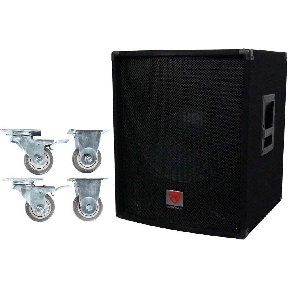 Package Includes: (1) RockvilIe SBG1184 18″ 1000 Watt Passive 4-Ohm Pro DJ Subwoofer, MDF/Pole Mount. (1) RockvilIe WH4 3″ Locking+Swivel Steel Caster Wheels 4 PA DJ Speakers, Subwoofers. RockvilIe SBG1184 18″ 1000 Watt Passive 4-Ohm Pro DJ Subwoofer + Steel Casters. 18 Pro audio woofer. 500 Watts RMS. 750 Watts Program Power Handling. 1000 Watts Peak Power Handling