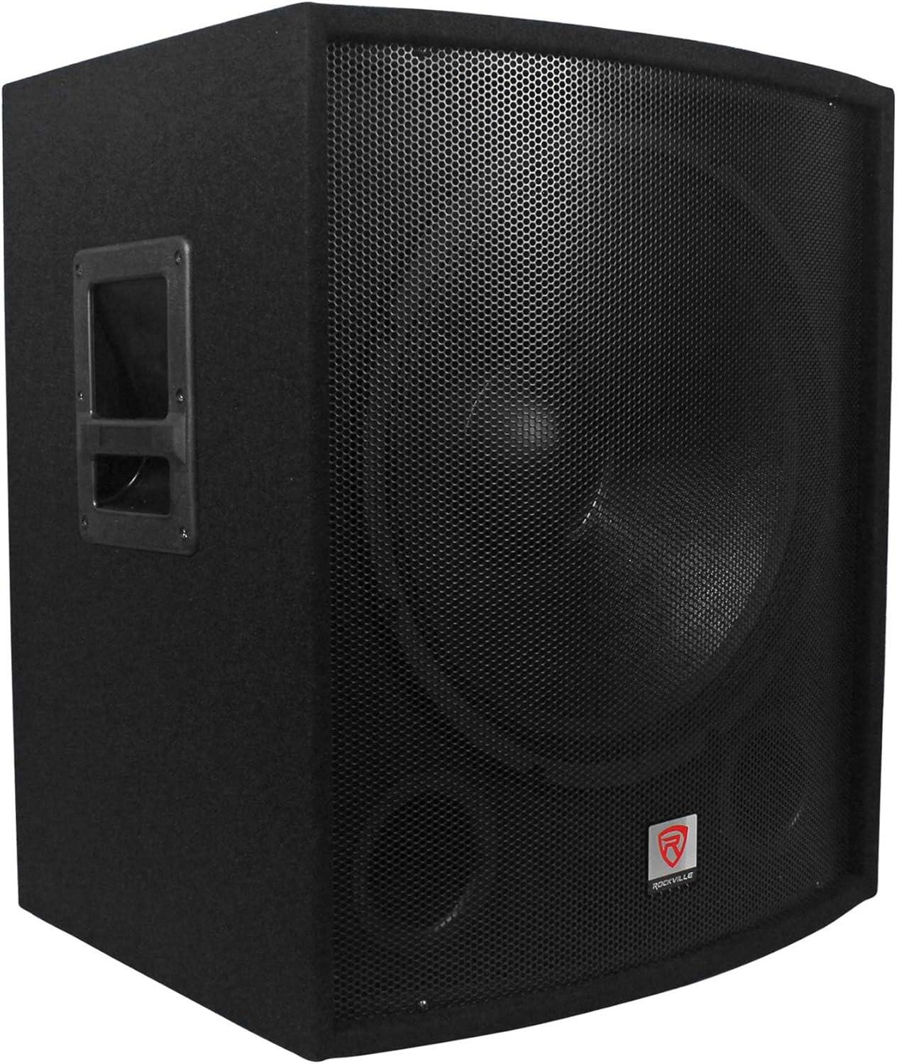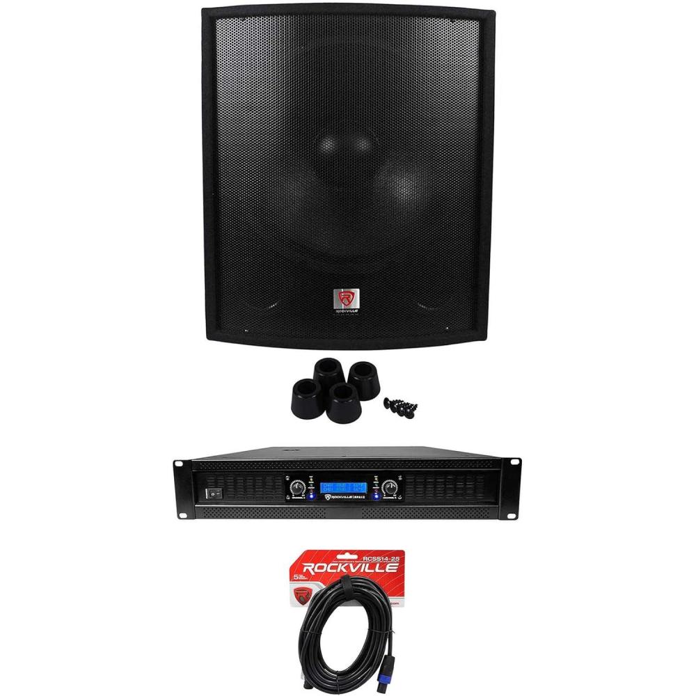 Package Includes: (1) RockvilIe SBG1188 18″ 1000 Watt Passive Pro DJ Subwoofer, MDF Cabinet/Pole Mount. (1) RockvilIe RPA12 5000 Watt Peak / 1400w RMS 2 Channel Power Amplifier Pro/DJ Amp. (1) Rockvile RCSS1425 25' 14 AWG Speakon to Speakon Speaker Cable 100% Copper. RockvilIe SBG1188 18″ 1000 Watt Passive Pro DJ Subwoofer w/ MDF Cabinet, Pole Mountable. 18 Pro audio woofer. 500 Watts RMS. 750 Watts Program Power Handling. 1000 Watts Peak Power Handling