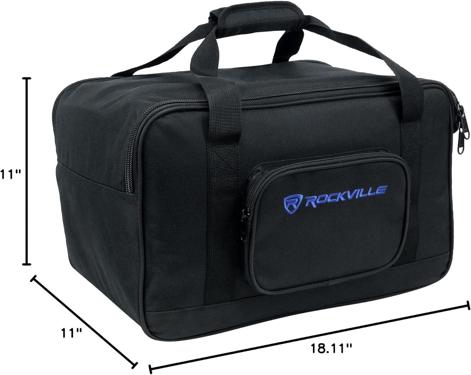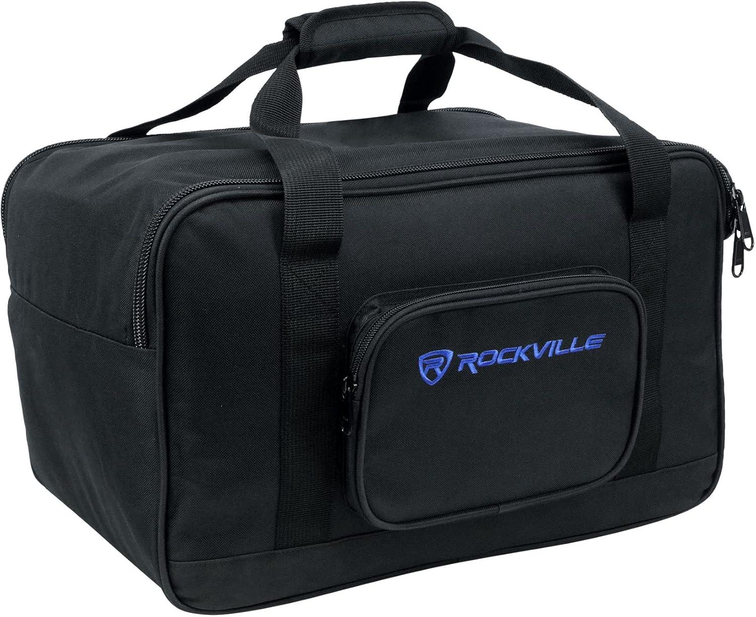 Protective TB8 v2 Bag with Stand Holder: The Rockville TB8 v2 adds thicker foam padding, interior buckle straps to secure the speaker, and dual reinforced handles to balance weight during transport. A dedicated side pocket with strap and buckle holds your speaker stand, reducing trips. The water-resistant exterior, durable stitching, and smooth dual YKK zippers provide dependable, gig-to-gig protection for most popular 8″ PA cabinets, including SPG84.