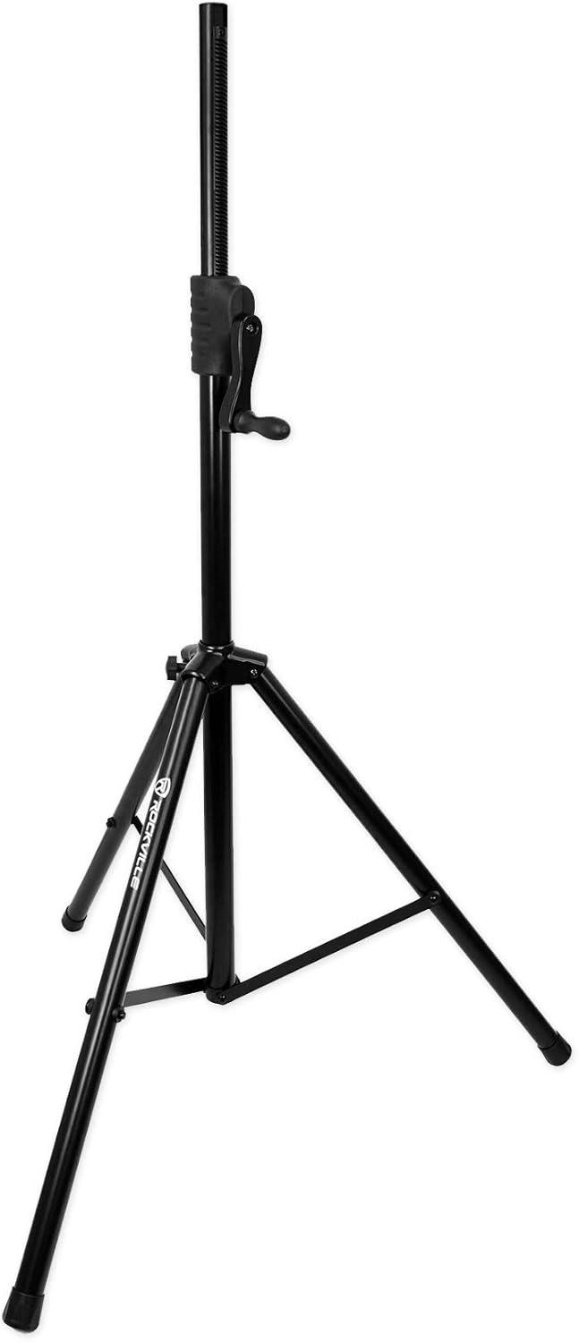 Crank-Up Speaker Stands: The Rockville RVCS2 stands feature a manual crank mechanism, enabling easy adjustment of speaker height up to 80 inches. With a 100 lbs weight capacity, it provides stable support for most professional speakers, ensuring optimal sound positioning.