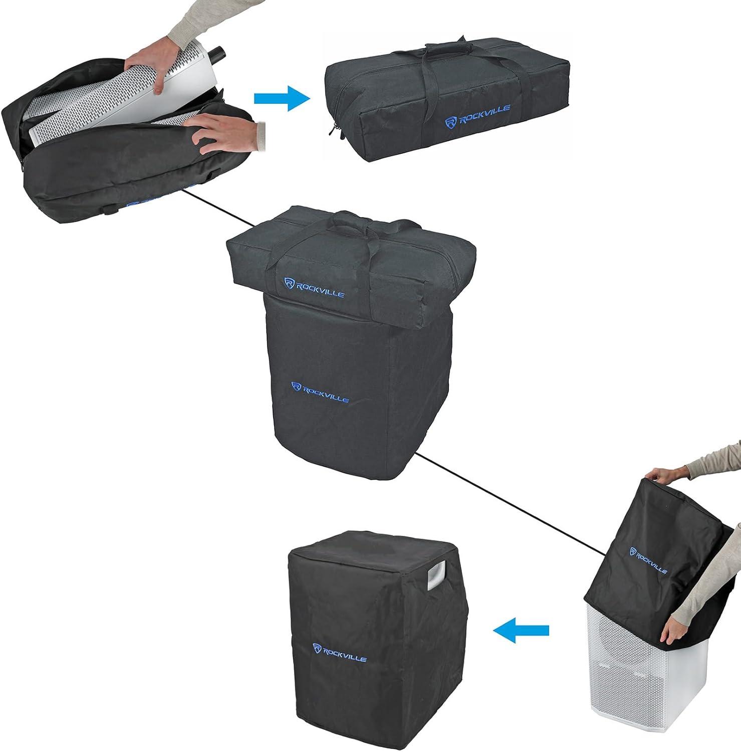PORTABLE & DURABLE DESIGN – Dual ergonomic handles, subwoofer cover, and compact column speakers in a protective carry bag for easy transport.