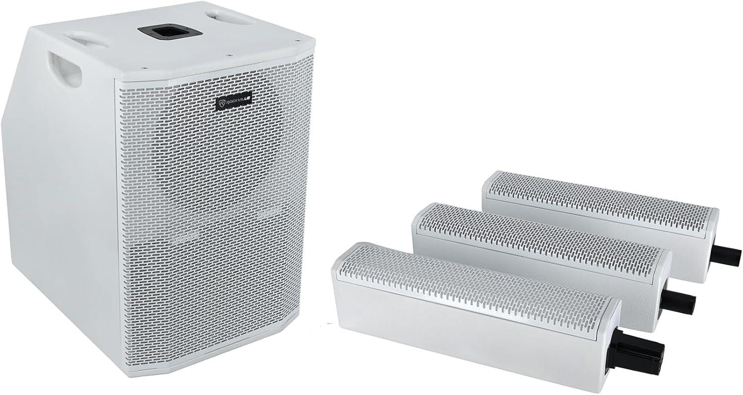 Rockville TITAN ARRAY SYSTEM White, 3200W Powered Column Array Speaker System, Dual 10” Subwoofers, (10) 3.5” Drivers, Bluetooth, Carry Bags Included, Perfect for DJs, Live Sound, and Events(White)