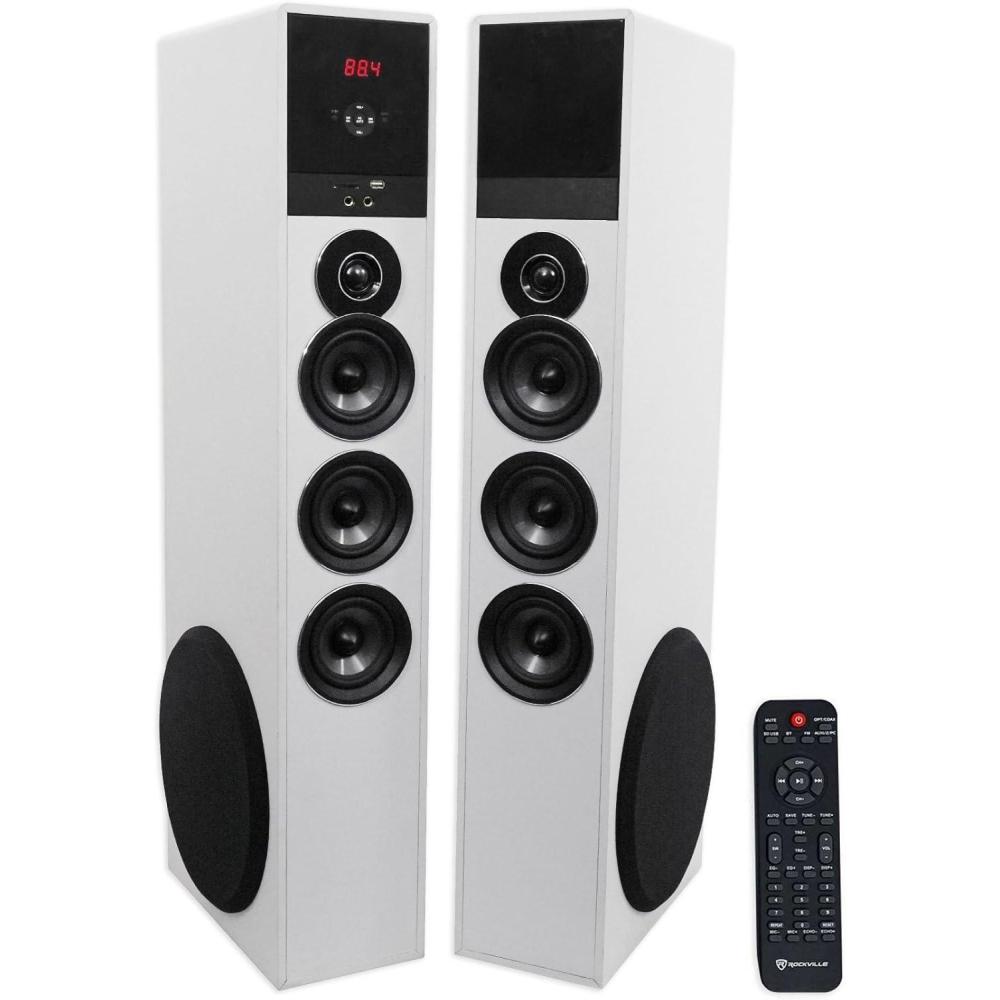 imageRockville TM150W Powered Home Theater Tower Speaker System White 1000W 10quot Subwoofers Bluetooth USBSD Playback FM Radio Remote Control Karaoke Ready Perfect for Home EntertainmentWhite