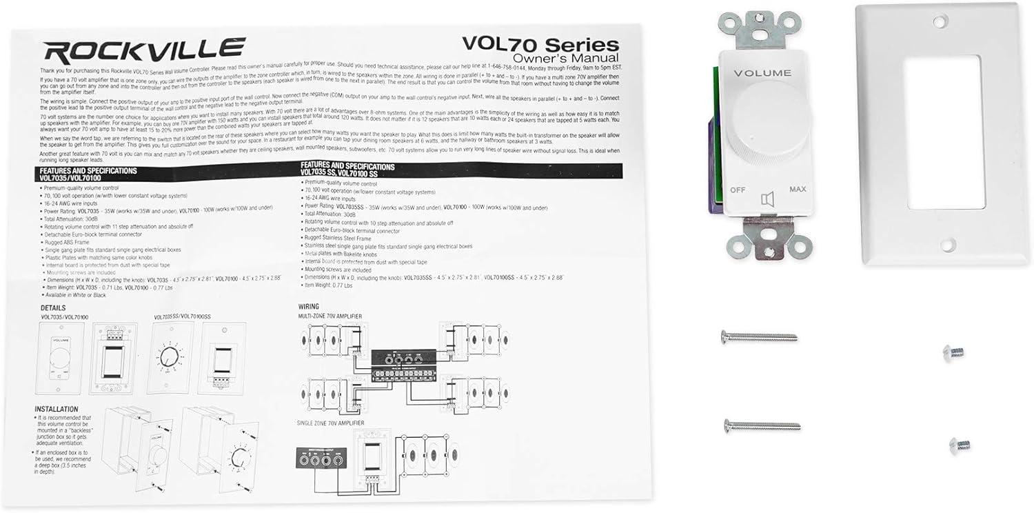 Be the first to review “Rockville VOL7035 Black 35W 70V Wall Volume Control Zone Controller, 11-Step Attenuation, 1-Gang Black Finish, Durable Design for Commercial Audio Systems(White)”