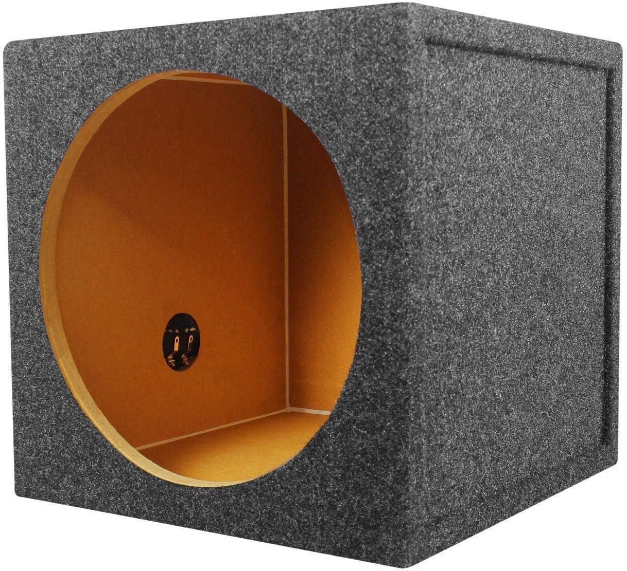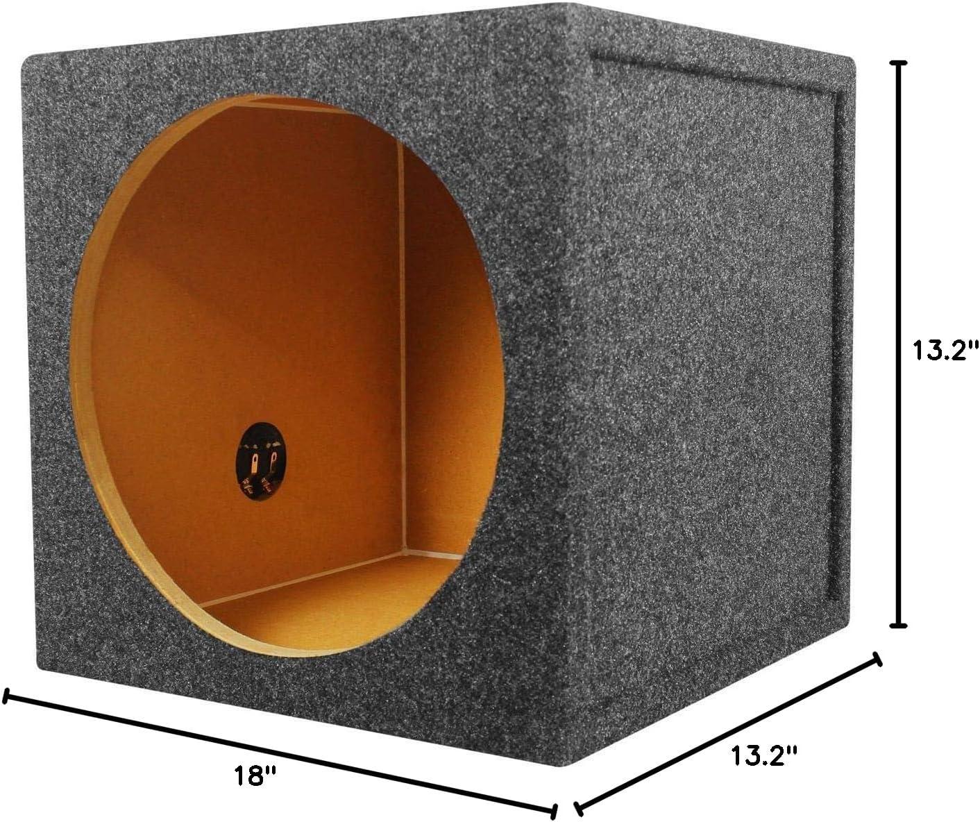 Pro-Quality Sealed Enclosure & Kit: The RS12 single 12″ sealed enclosure is made in the USA from 3/4″ Grade A MDF with 1.0 cu.ft gross (0.75 cu.ft net), dimensions 18″ L x 13.2″ W x 13.2″ H, mounting depth up to 12.25″, precision-cut mounting, top-grade glue and silicone-sealed seams, gold spring-loaded terminals to maximize the W12K5S2. The K1 installation kit includes screws, 12' 14 AWG speaker wire and spade terminals for neat, reliable wiring and durable mounting.