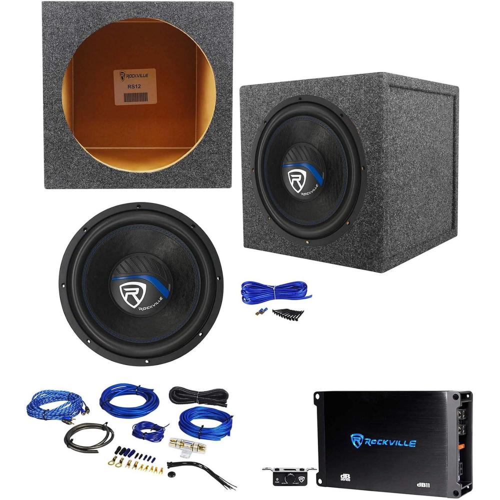 Package Includes: (1) Rockville K5 W12K5S2 12″ 1400w 2 Ohm Car Audio Subwoofer Sub 350w RMS CEA Rated!, (1) Rockville dB11 1400 Watt Peak/350 Watt Dyno-Certified RMS Mono 2-Ohm Amplifier Car Amp+Bass Remote, (1) Rockville RWK81 8 Gauge Complete Amp Installation Wire Kit with 100 % Copper RCA, (1) Rockville RS12 Single 12″ 1.0 cu.ft. 3/4″ MDF Sealed Subwoofer Enclosure Box, (1) Rockville K1 Complete Single Sub Box Enclosure Installation Kit: Speaker Wire, Screws, Spades