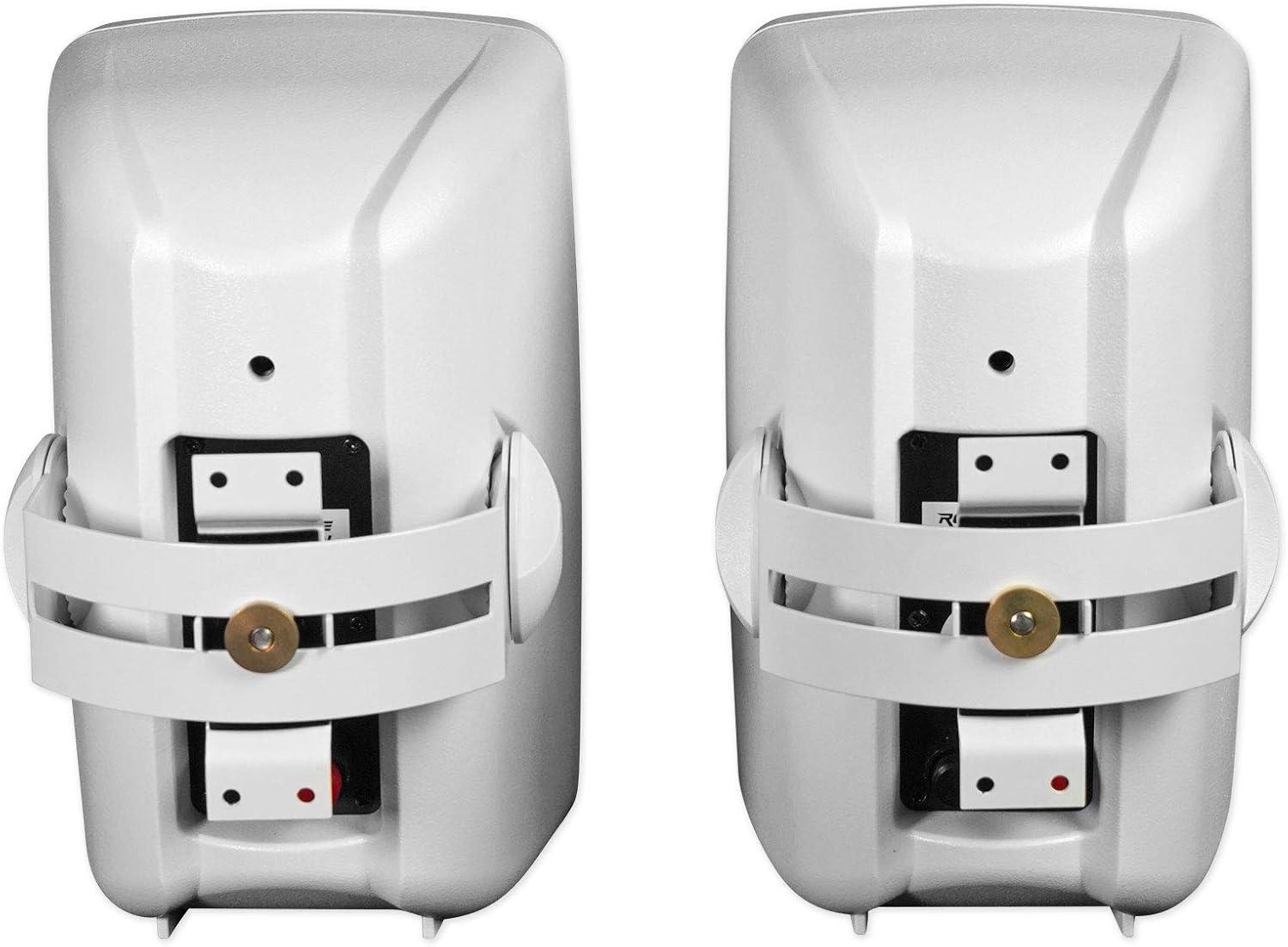 4-WAY SWIVEL BRACKET: Mounts to walls with up/down/left/right adjustment for optimal sound staging in large rooms, patios, and open spaces.