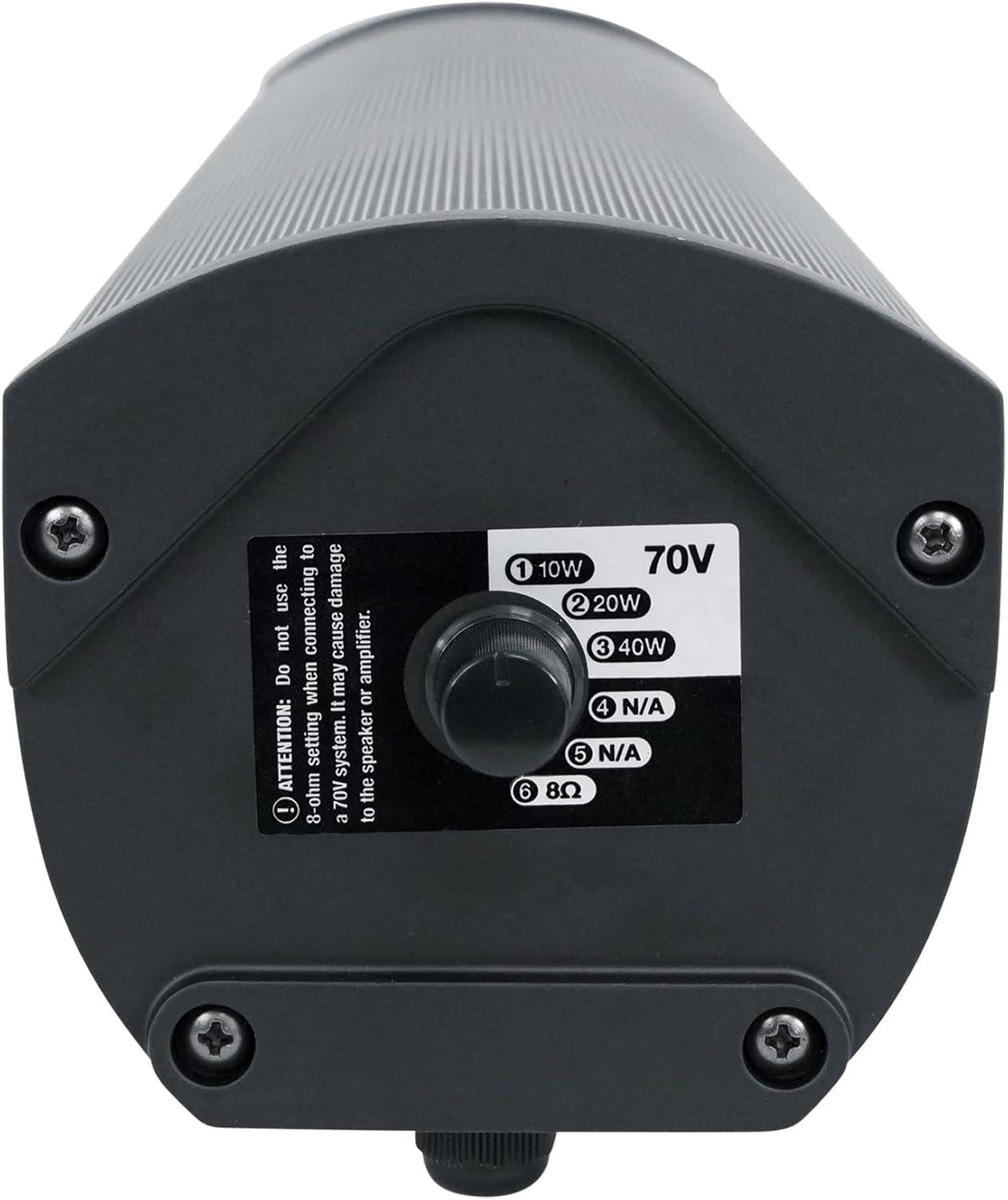 DURABLE & VERSATILE: 85dB sensitivity, thick aluminum build, and built-in transformer support 70V systems, delivering loud, dispersed audio indoors or out.