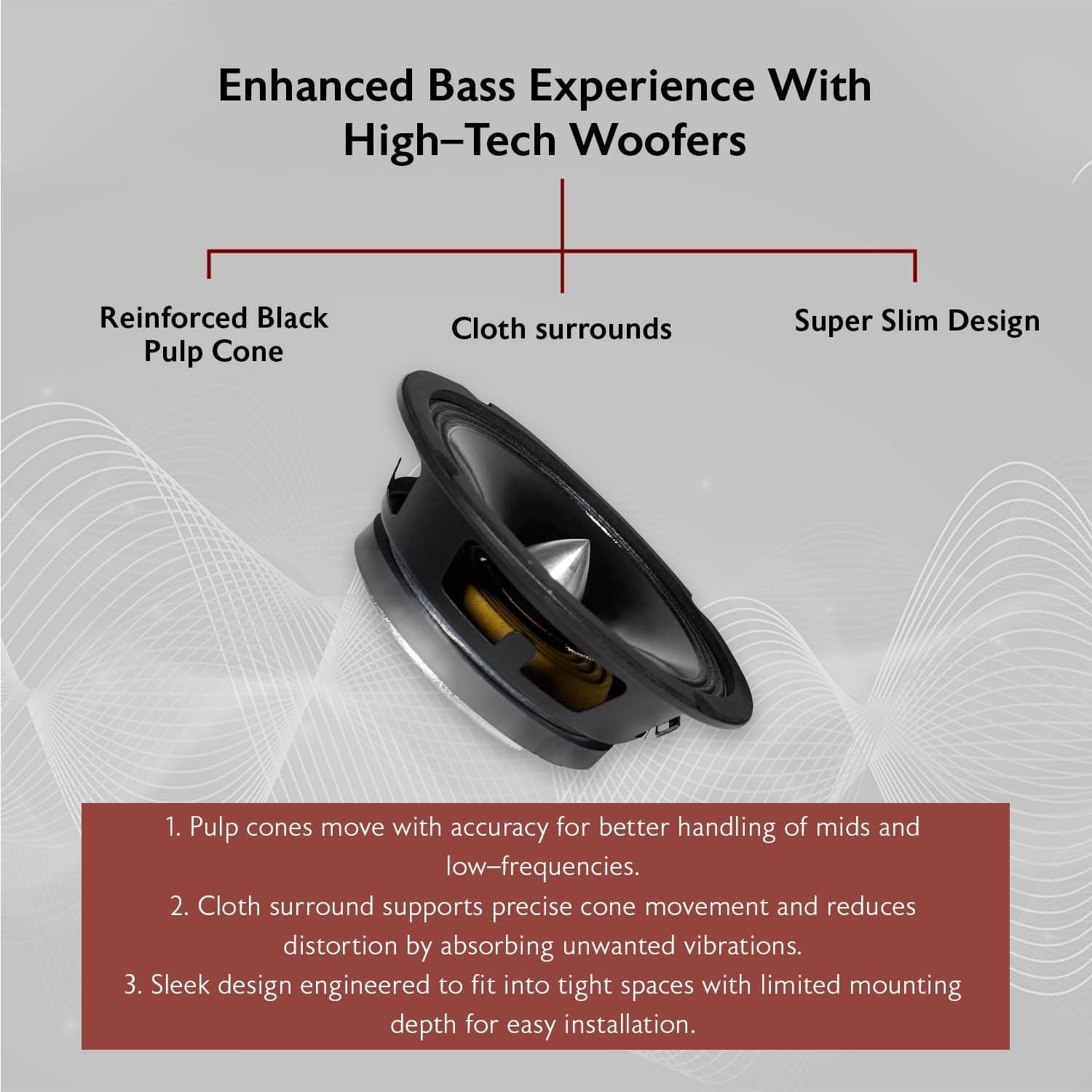 High Power Output: Delivers 1000W Peak and 250W RMS per pair for powerful mid-bass and detailed highs, ideal for high-performance systems.