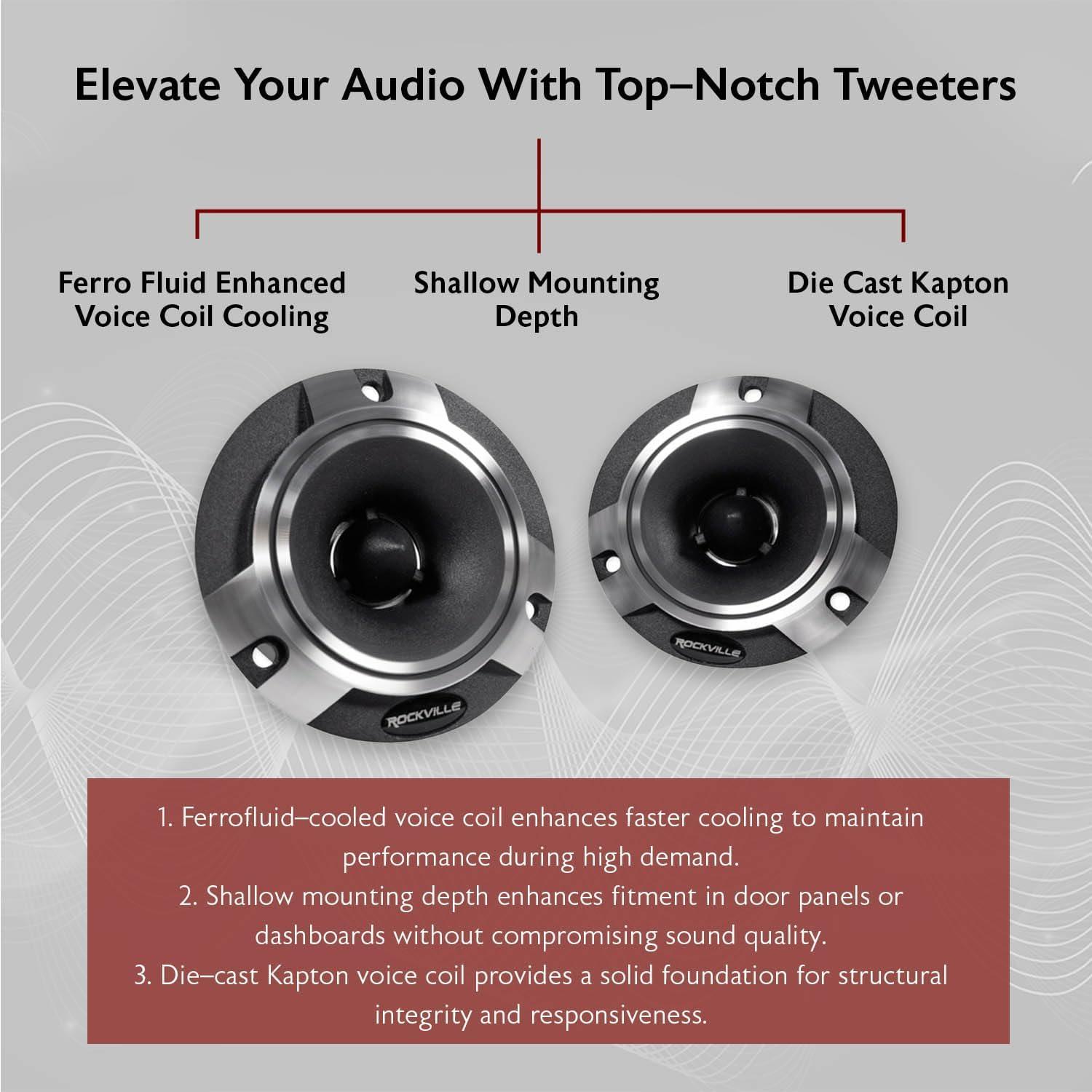 Rockville RT5 Aluminum Tweeter Pair, 2.8″, 120W, 4 Ohms, Titanium Diaphragm, Kapton Voice Coil, High Sensitivity, CEA, Perfect for Car and Pro Audio(Pair (with Wire Groove))